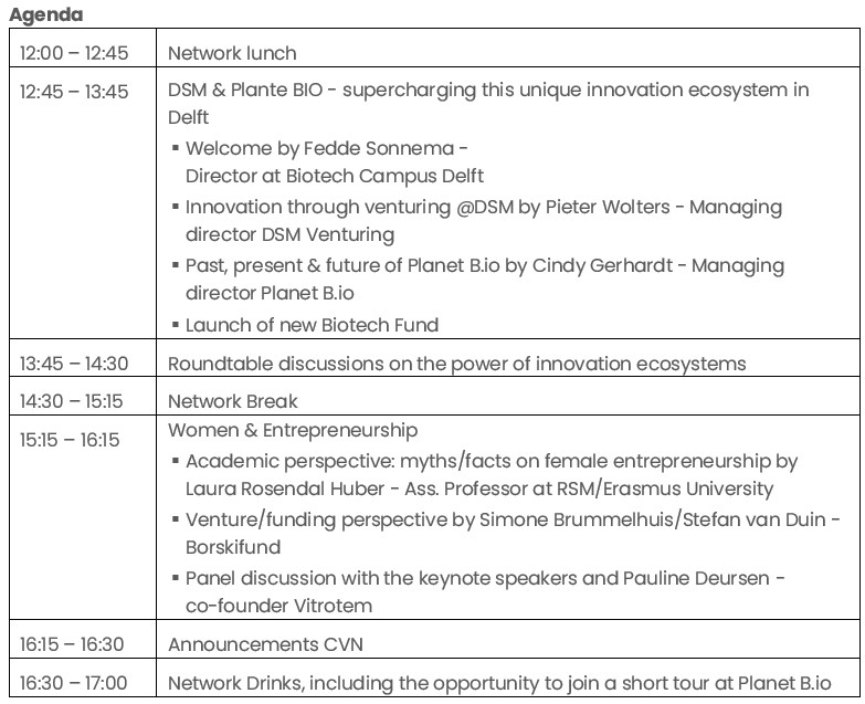 Planet B.io will welcome us at Biotech Campus Delft. You ,will learn how DSM and Plant B.io together are supercharging this unique innovation ecosystem in Delft. The other theme of the event will be female entrepreneurship